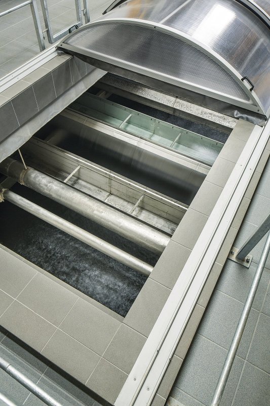 Pět železobetonových GAU filtrů, každý o ploše 69 m2, je vybaveno nerezovými přítokovými a odtokovými žlaby. Filtrační vrstva uhlí činí v každém filtru 205 cm. Filtry se skrývají v prostoru, který je shora částečně zastřešen a částečně kryt podlahou haly nad filtry.