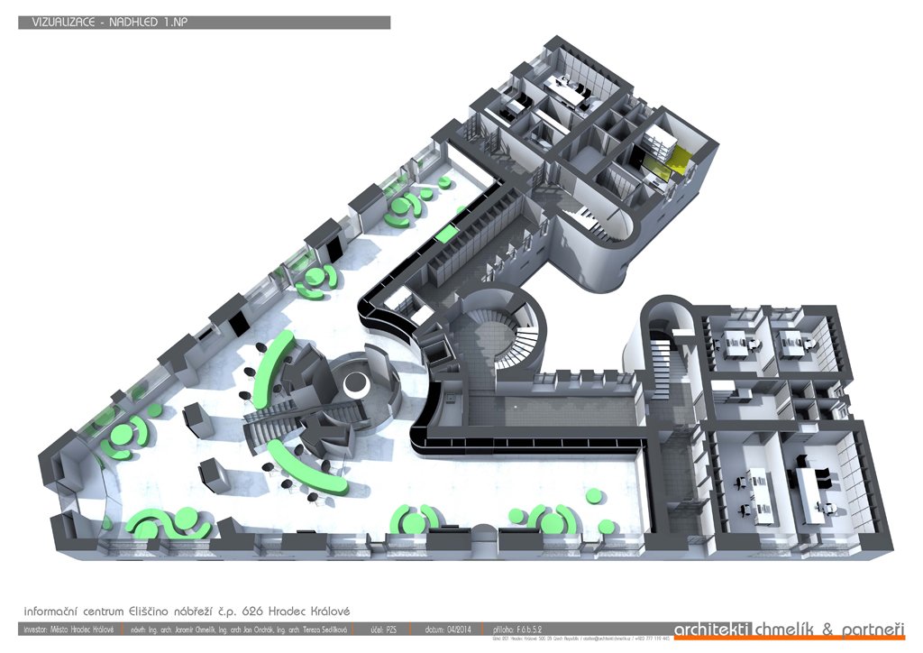 Infocentrum třetího tisíciletí – tímto titulem se bude pyšnit nové infocentrum v Hradci Králové na Eliščině nábřeží. Stavební práce byly zahájeny v lednu 2015 a dokončeny by měly být v červenci téhož roku. Od podzimu by mělo infocentrum sloužit veřejnosti.
