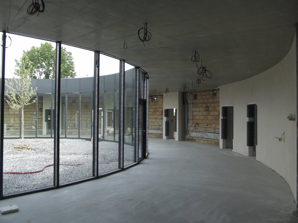 „Jednak to, že jde o kruhovou stavbu s pohledovými betony, tak všechny prostupy se dělaly stropní deskou. To znamená, že v budoucnu nelze nic přiseknout, dodatečně natáhnout. Ve stropní podbedněné desce se vytýčily veškeré prostupy pro vzduchotechniku, elektřinu, světla atd. Dodatečné vrtání i proto, že tam je topné potrubí, nepřichází v úvahu. Za zmínku ještě stojí zavedení vzduchotechnické jednotky do každé třídy.”