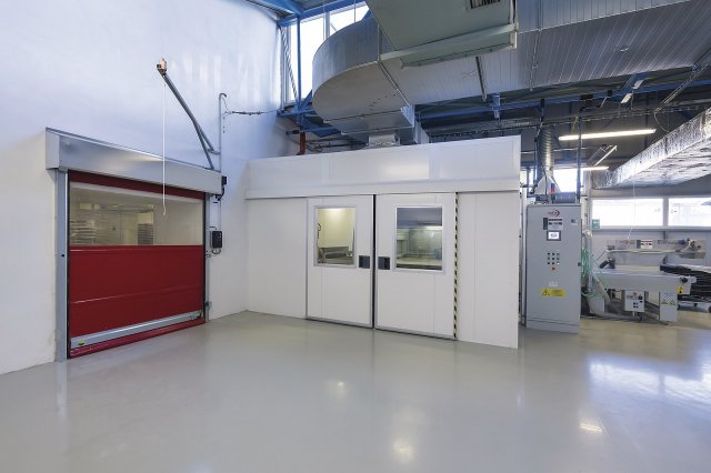 Dokonale očištěné nábytkové dílce z MDF materiálu se vloží do automatu, kde je na ně aplikována polyuretanová barva ve variantě vysokého laku (lesku), matu či polomatu. Slouží k tomu několik trysek, které barvu stříkají v absolutně rovnoměrném nánosu. Nalakovaná dvířka putují následně do sušárny, kde čekají cca 24 hodin na vytvrdnutí povrchu. Každý lakovaný dílec po zaschnutí laku pokračuje do leštícího centra. Automatická leštička povrch finálně zaleští. S hotovými výrobky se zachází maximálně opatrně, např. jsou převáženy ve speciálních vozících s kartáčky, aby nedošlo k žádnému poškození.
