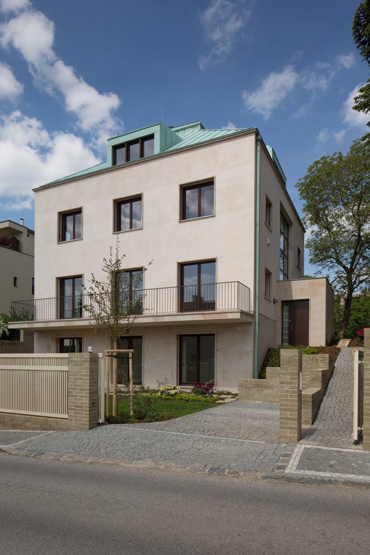 Dům vyplňuje stejný objem, jako měl předchozí objekt ze třicátých let, který byl pro svůj špatný technický stav odstraněn. Piano nobile na úrovni prvního nadzemního podlaží navazuje na horní zahradu a balkon do ulice. Druhé podlaží je ložnicové. V podkroví se nachází pracovna, posilovna a další pokoje. Uspořádání domu umožňuje v budoucnosti rozdělit dům tak, aby v každém patře mohl být samostatný byt. Stanová střecha má krytinu s korodované mědi, okna jsou dřevěná špaletová s kamenným ostěním. Sokl je obložen kamenem, zbývající části fasády jsou omítnuté kletovanou omítkou. Navrhovaný dům nechce být nápadný, chce zapadnout do kontextu okolní zástavby, chce být solidní, klasický a nadčasový.