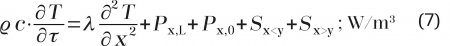 Rovnice (3) po započítání sálavých členů, které přispívají na ohřev či chlazení v daném bodě x, má tvar: