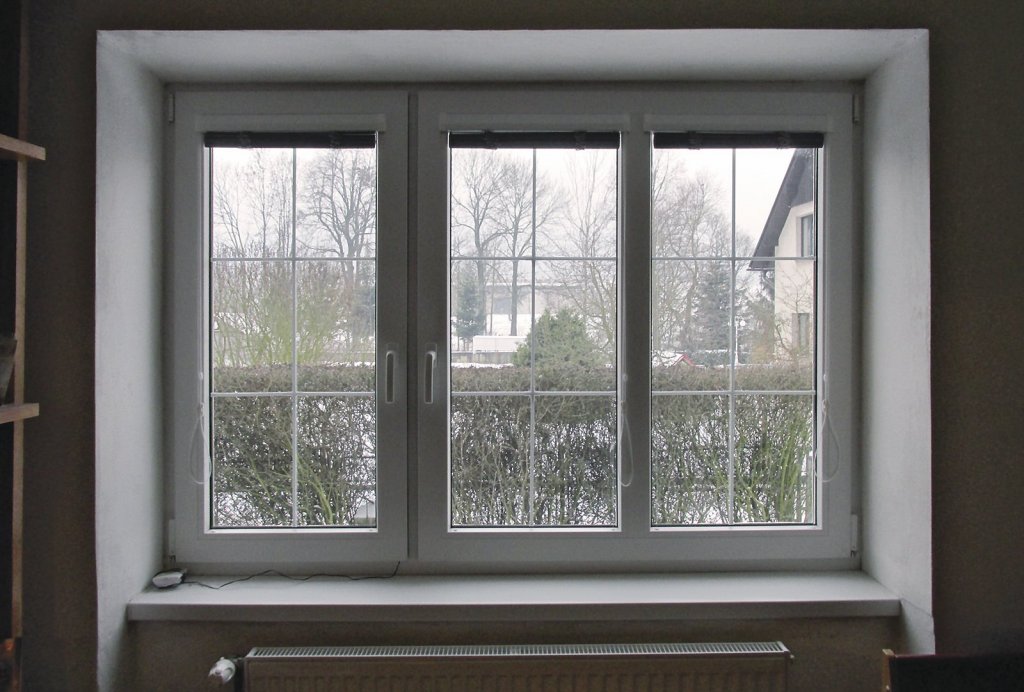 Velmi důležitou součástí výměny oken je pečlivé provedení veškerých zednických prací a poté namontování zbývajícího příslušenství, tedy parapetů a žaluzií. Zednické práce jsme zvládli bez pomocí firmy i zedníka. Ostění okna se nejprve muselo vyplnit deskami extrudovaného polystyrenu, což mimo jiné okna vyteplilo a bylo tak tedy zabráněno provlhání okolí okna. Následně se na ostění dolepily parotěsné pásky, na něž se pak natáhla fasádní mřížka (perlinka) a zarovnala se fasádním lepidlem (stěrkou). Finální začištění se zakončilo aplikací sádrové interierové omítky. Na závěr se provedlo ještě začištění vápnem a pak teprve se kolem oken vše zamalovalo do původní barvy.