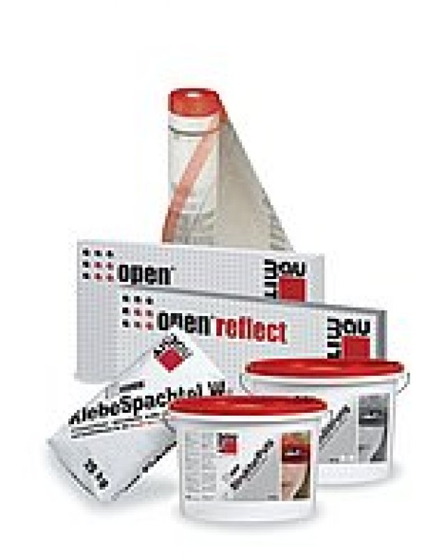 Systém OPEN využívá přednosti obou systémů – polystyren, s velkým množstvím drobných otvorů umožňuje rychlé vysychání stavby a je cenově oproti systému z minerálních desek výrazně lacinější. Také lepicí stěrka a finální omítka je pro průběh vodních par difuzně otevřená.