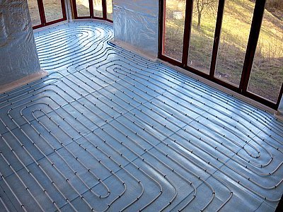 Výrobci reflexních fólií většinou dbají na to, je-li to možné, aby termoreflexní, velmi tenká hliníková vrstva byla nakašírována k nosné fólii (většinou bublinová fólie nebo PE pěna) tak, že působí reflexně i dovnitř nosiče. V takovém případě by fungovalo i řešení, kdy na podlahovou izolaci položíme termoreflexní fólii orientovanou hliníkovou vrstvou ven, na ní položíme topné trubky a zalijeme betonem. Výrobci takové řešení nedoporučují, neboť alkalický beton i jiné potěry velmi tenkou hliníkovou vrstvičku zcela rozleptá a znehodnotí.