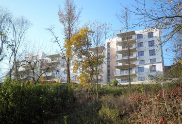 Terasový bytový dům umístěný ve svahu s problematickou geologií a s náročným technickým řešením pro zakládání.