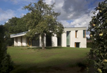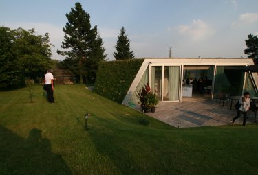 Dům je navržen pro manželský pár na důchodu. Je umístněn ve středu velmi mírně svahovité zahrady. Půdorys v tvaru šestiúhelníka je doplněn vstupným přídavným podlažím pod terénem.…
